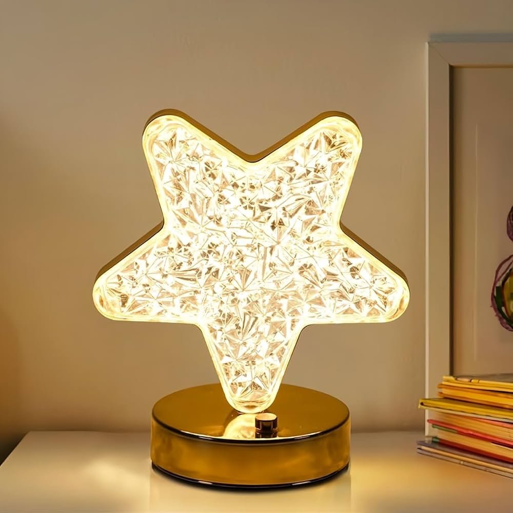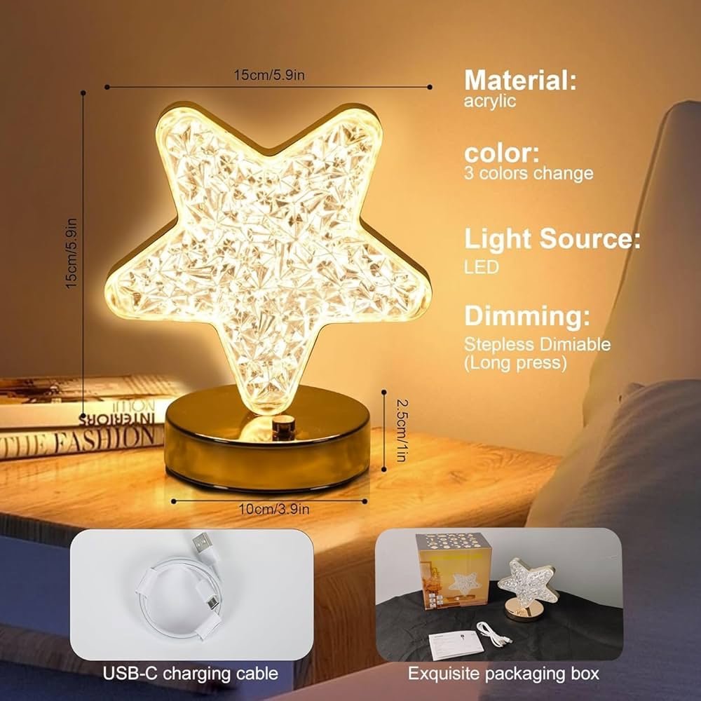 مصباح ترابيزة على شكل نجمة قابل للتعتيم غير متدرج مع 3 ألوان من ليوندر ليلي لإعادة الشحن منفذ USB كريستال بنجوم لجانب السرير للمكتب وغرفة النوم المعيشة ديكور المنزل