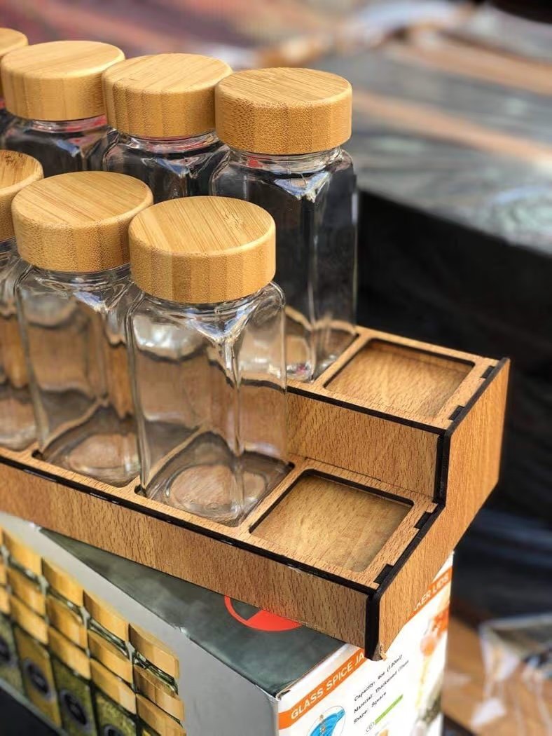 طقم توابل زجاج غطاء خشب بامبو (المستورد الأصلي)