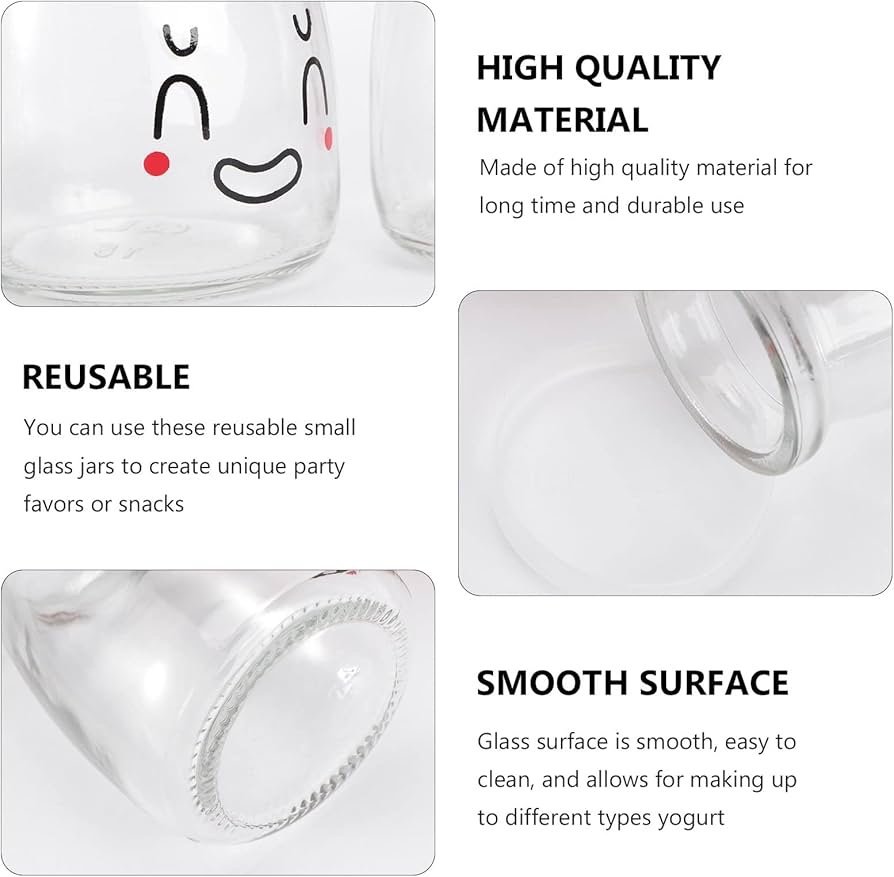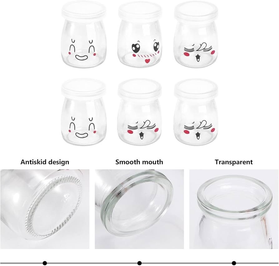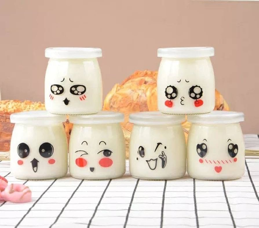برطمانات زبادي زجاج بغطاء ٦ قطع