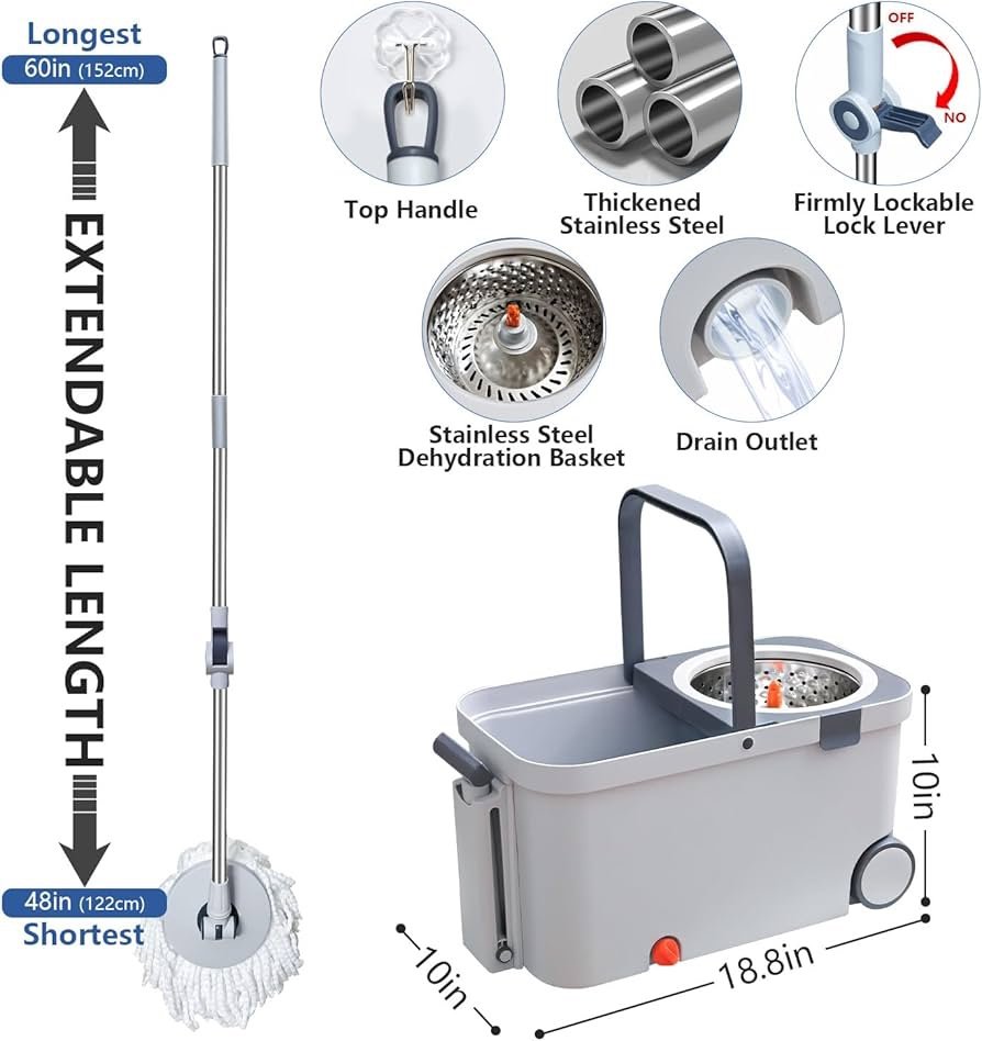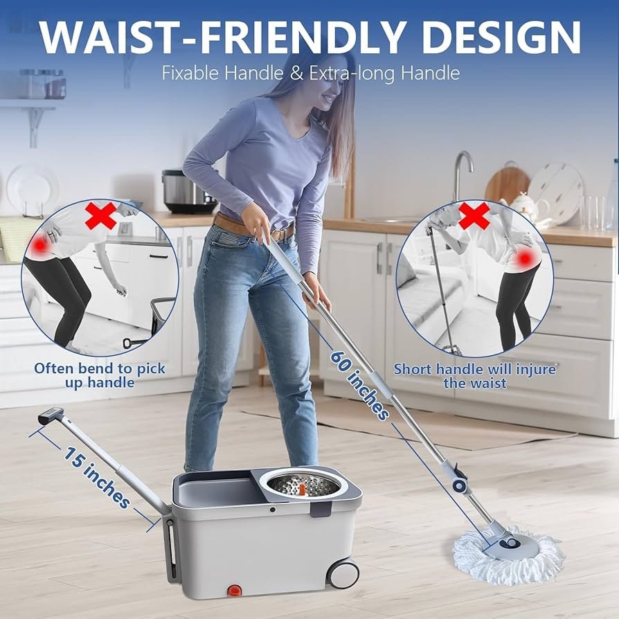 سواء كنت تعالج الفوضى اليومية أو تمنح أرضياتك تنظيفًا عميقًا، فإن نظام الممسحة والدلو هذا هو الحل الشامل. تنظيف أكثر ذكاءً وليس أكثر صعوبة!