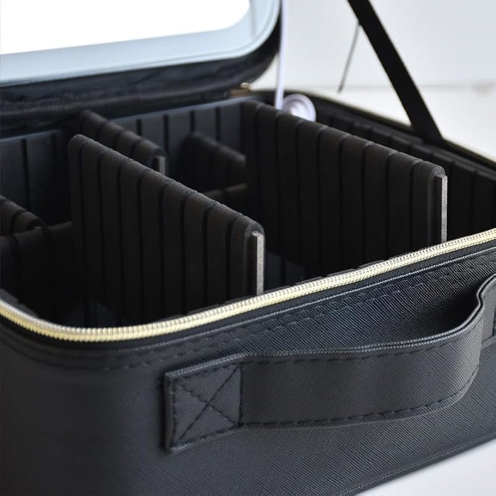 شنطة مكياج بمراية مضيئة ٣ درجات لون أسود
