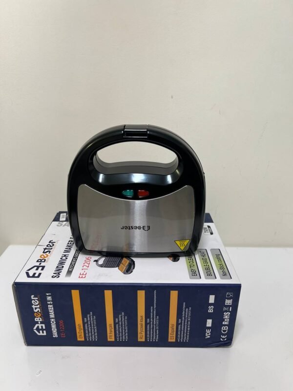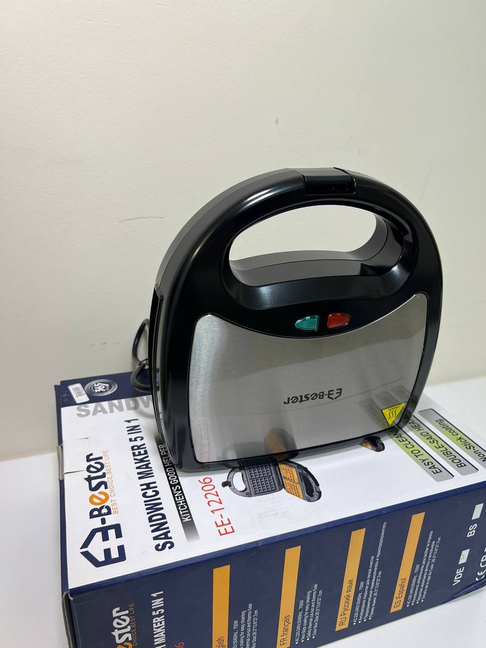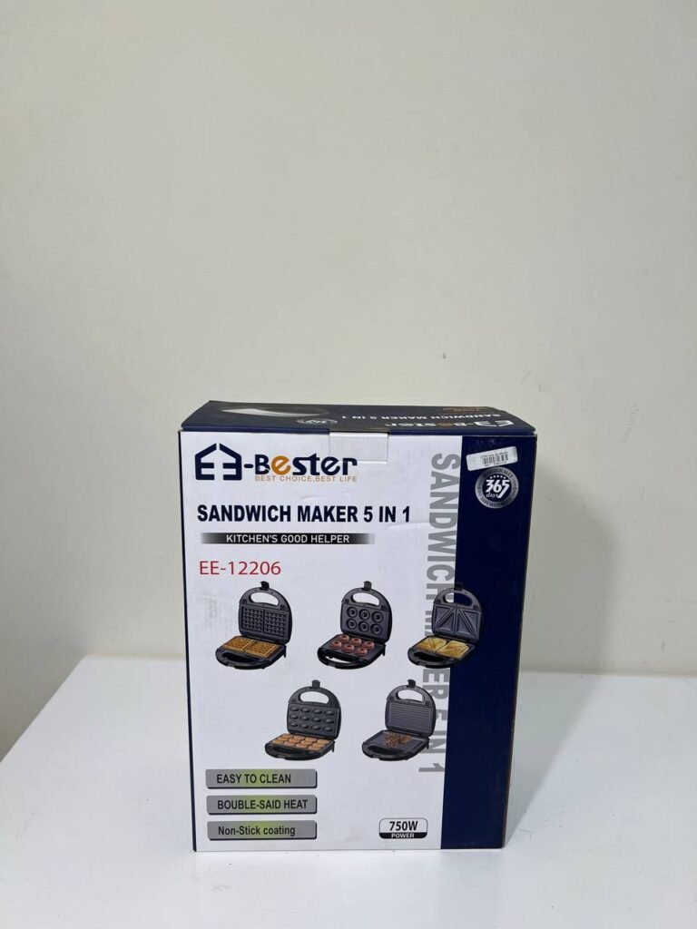 اجعل تحضير وجبات الإفطار والحلويات متعة سهلة مع ماكينة صنع الساندوتش والوافل 5 في 1. هذا الجهاز المبتكر يجمع بين عدة وظائف في جهاز واحد، مما يوفر لك المساحة والوقت في المطبخ. يأتي مع 5 ألواح قابلة للتبديل، مما يسمح لك بتحضير مجموعة متنوعة من الأطعمة الشهية: