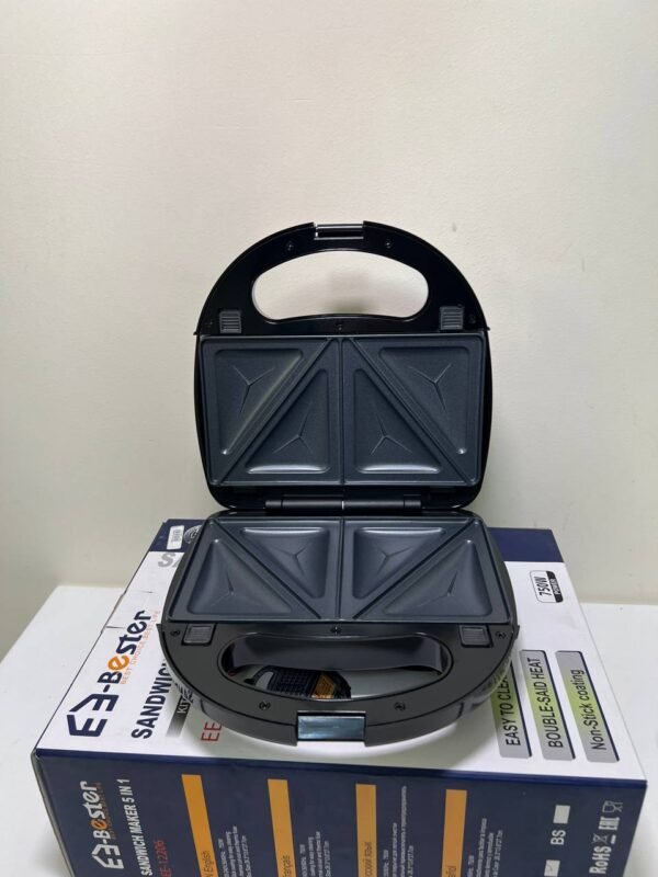 كل الألواح مطلية بمادة غير لاصقة عالية الجودة، مما يضمن سهولة إزالة الطعام والتنظيف. الجهاز يعمل بقوة 750 واط لضمان تسخين سريع ومتساوٍ. إنه الخيار المثالي لكل عائلة تبحث عن جهاز عملي ومتعدد الاستخدامات.