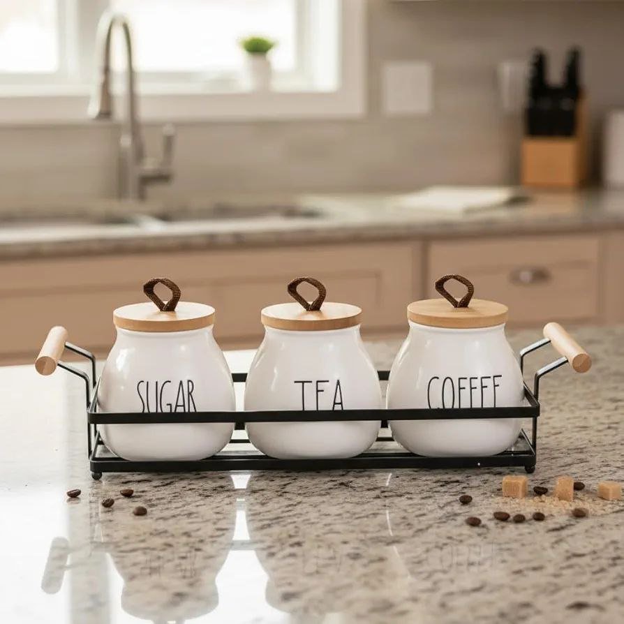 طقم كوفي بورسلين أنيق مكون من 3 برطمانات مخصصة لكل من: