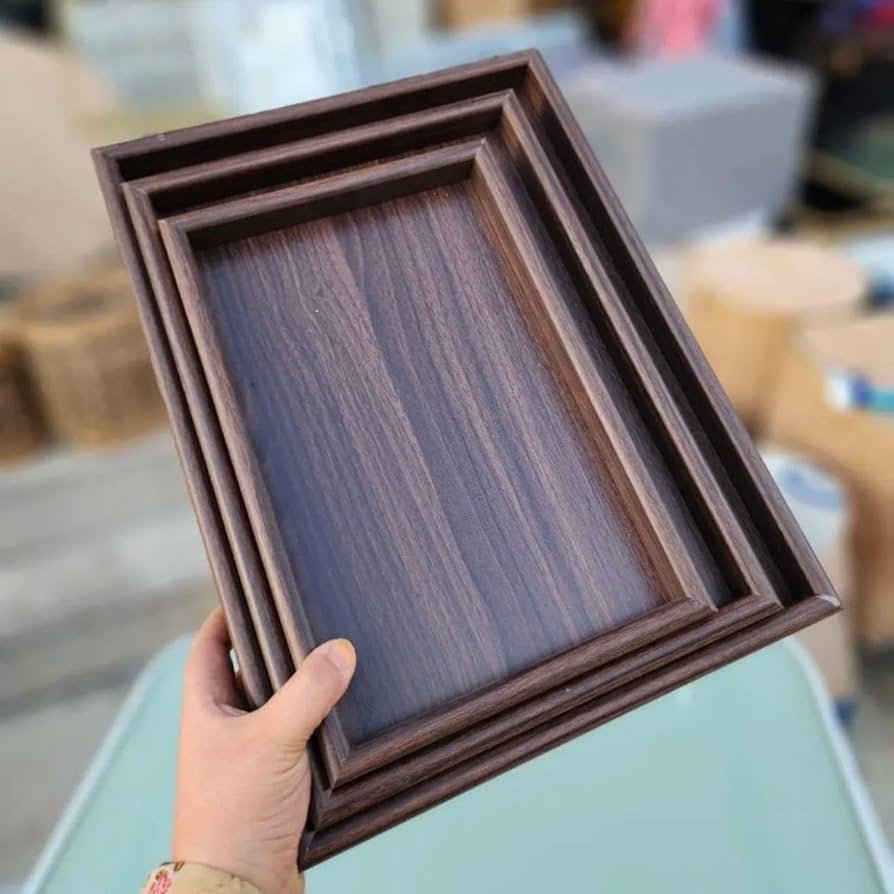طقم صواني تقديم ٣ قطع خشب مقاوم للماء بني غامق