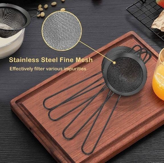 هل تبحث عن أدوات مطبخ أساسية وعالية الجودة؟ احصل على طقم المصافي الشبكية الأسود، المكون من 3 قطع بأحجام مختلفة لتلبية كل احتياجاتك. مصنوعة من الفولاذ المقاوم للصدأ لضمان المتانة ومقاومة الصدأ، وشبكتها الدقيقة تمنع مرور الشوائب. مثالية لتصفية الشاي، منخل الدقيق، غسل الخضروات، وأكثر. تصميمها الأنيق باللون الأسود يضيف لمسة عصرية لمطبخك.