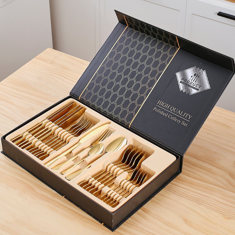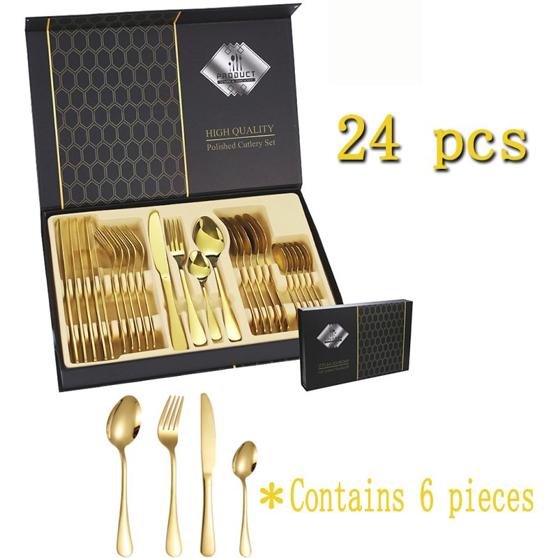 طقم المعالق والشوك والسكاكين الجولد 24 قطعة يجمع بين الأناقة والفخامة في كل تفصيلة.