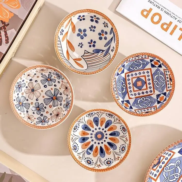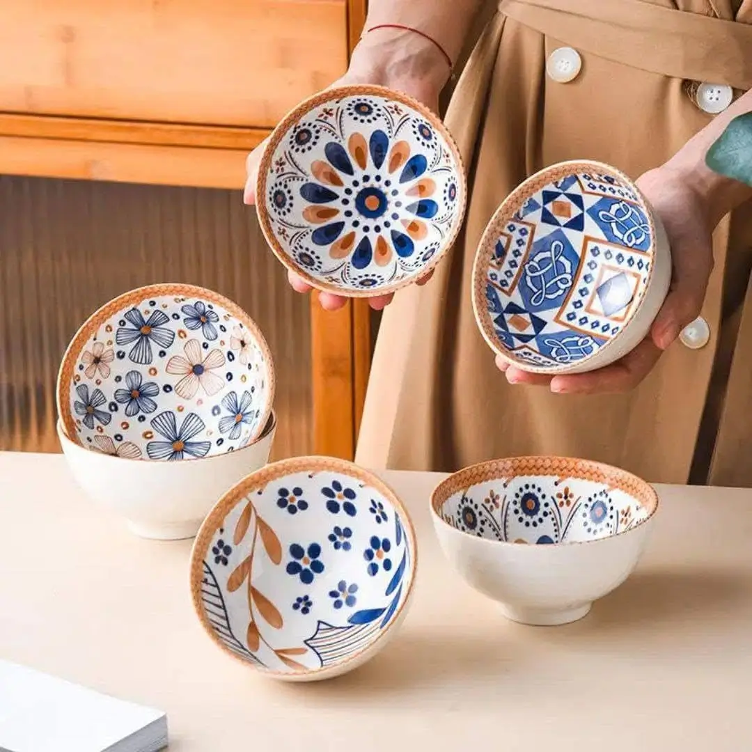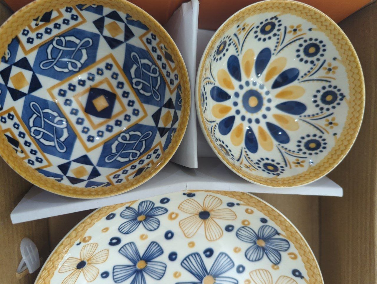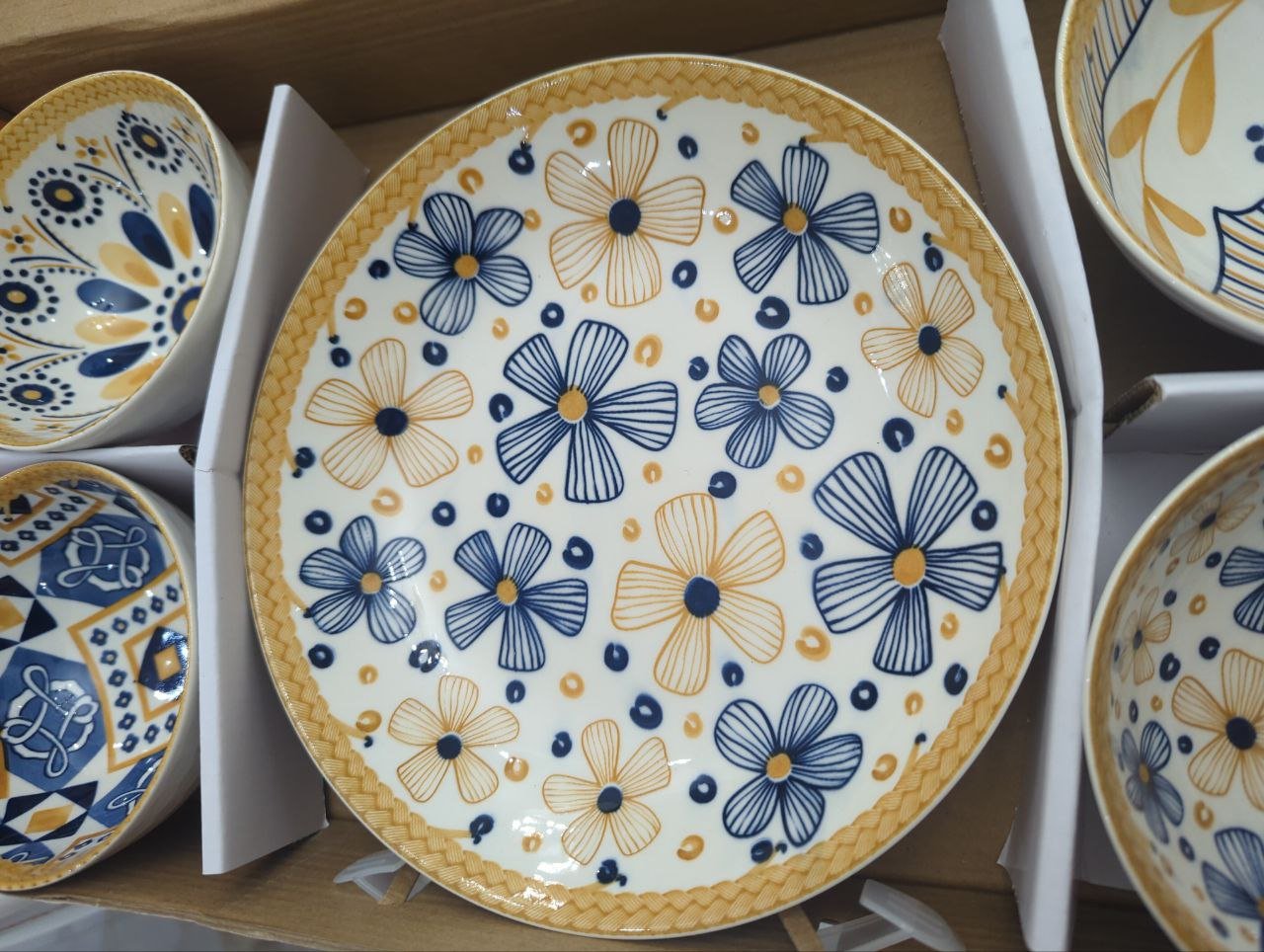 طقم أنيق من 5 قطع مصنوع من بورسلين عالي الجودة، يتكون من طبق تقديم كبير وأربع سلطانيات صغيرة بتصاميم متناسقة تجمع بين الأزهار والنقوش الهندسية بألوان الأزرق والذهبي على خلفية بيضاء فاخرة. مثالي لتقديم الوجبات أو الحلويات أو الفواكه، ويضفي لمسة جمالية على مائدة الطعام. آمن للاستخدام في الميكروويف وغسالة الأطباق لسهولة التنظيف.