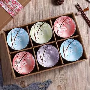 طقم 6 سلطانيات بورسلين ملونة مزينة بنقشة زهور كرز يابانية