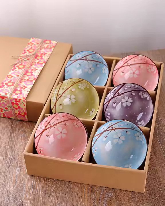 طقم مكون من 6 سلطانيات بورسلين فاخرة بتصميم ياباني راقٍ مستوحى من زهور الكرز (ساكورا). كل قطعة تأتي بلون مختلف (وردي، أخضر، أزرق، بنفسجي) مع لمسة فنية تضيف جمالًا لطاولة الطعام. آمنة للاستخدام في الميكروويف وغسالة الأطباق، مما يجعلها مثالية للاستخدام اليومي وتقديم الشوربة، السلطات، والحلويات.