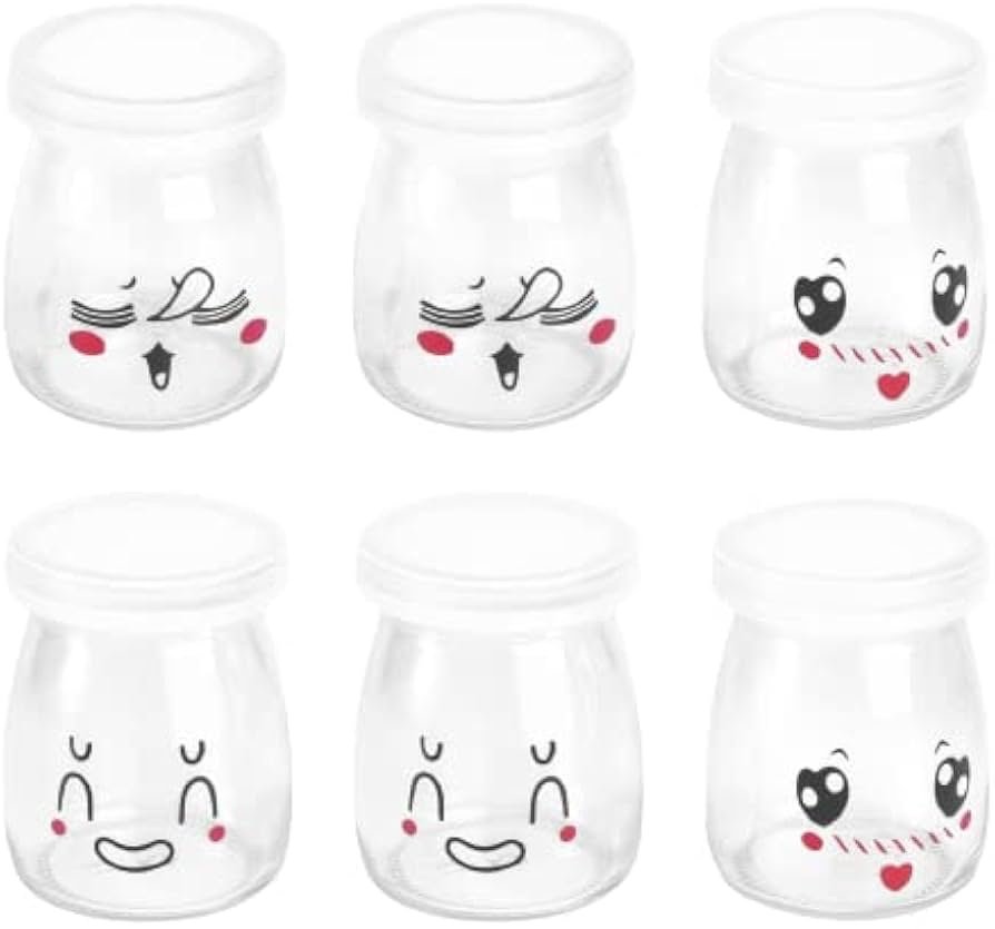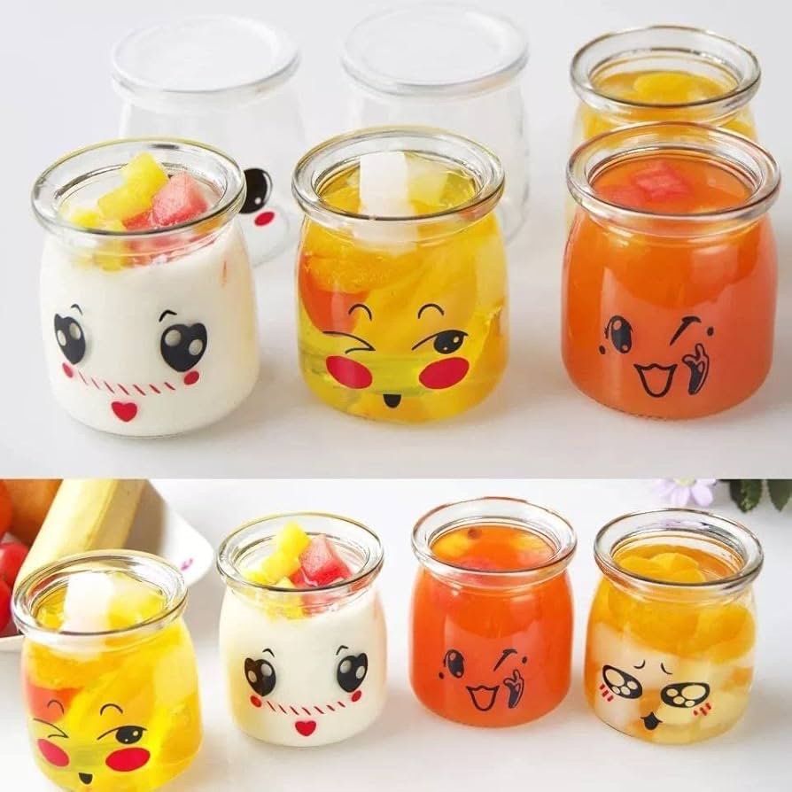 علبة زبادي وجيلي زجاج بغطاء قطعة واحدة