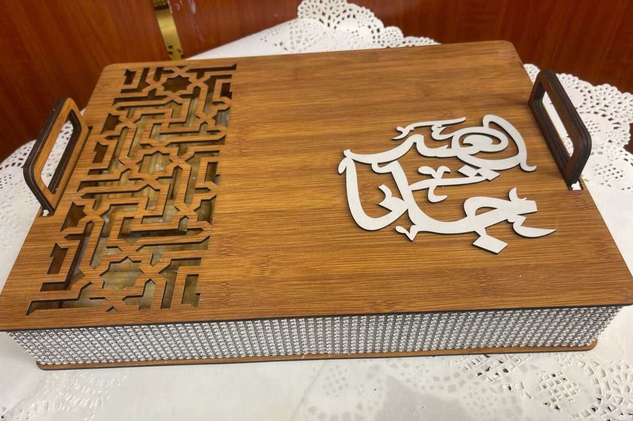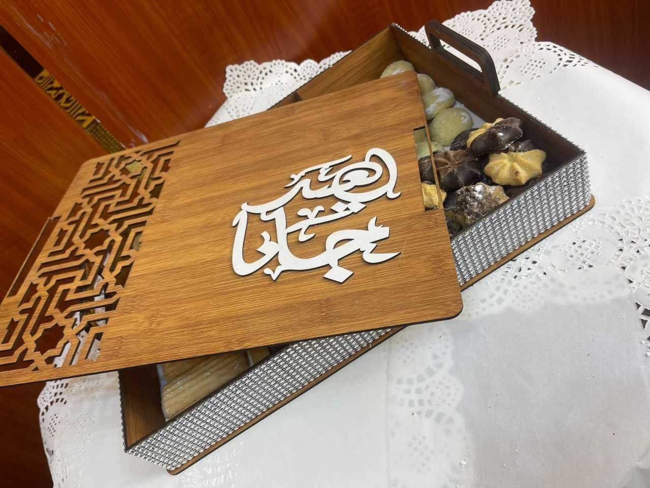 علبة كحك العيد خشب ليزر اندلسي ( العيد جانا )