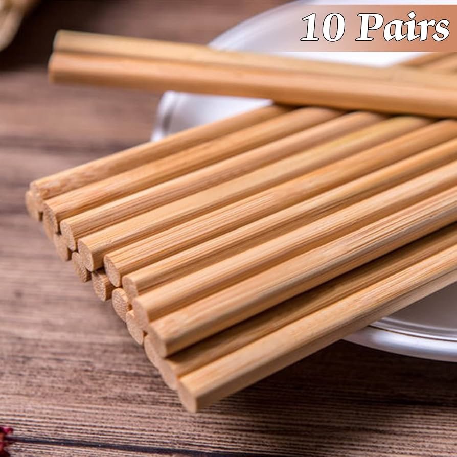 عيدان طعام خشب خيزران طبيعي ١٠ أزواج