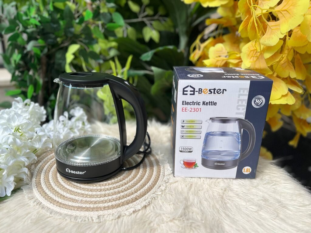 غلاية زجاجية E3-Bester – EE-2301، شاهد الغليان واستمتع بالنقاء.