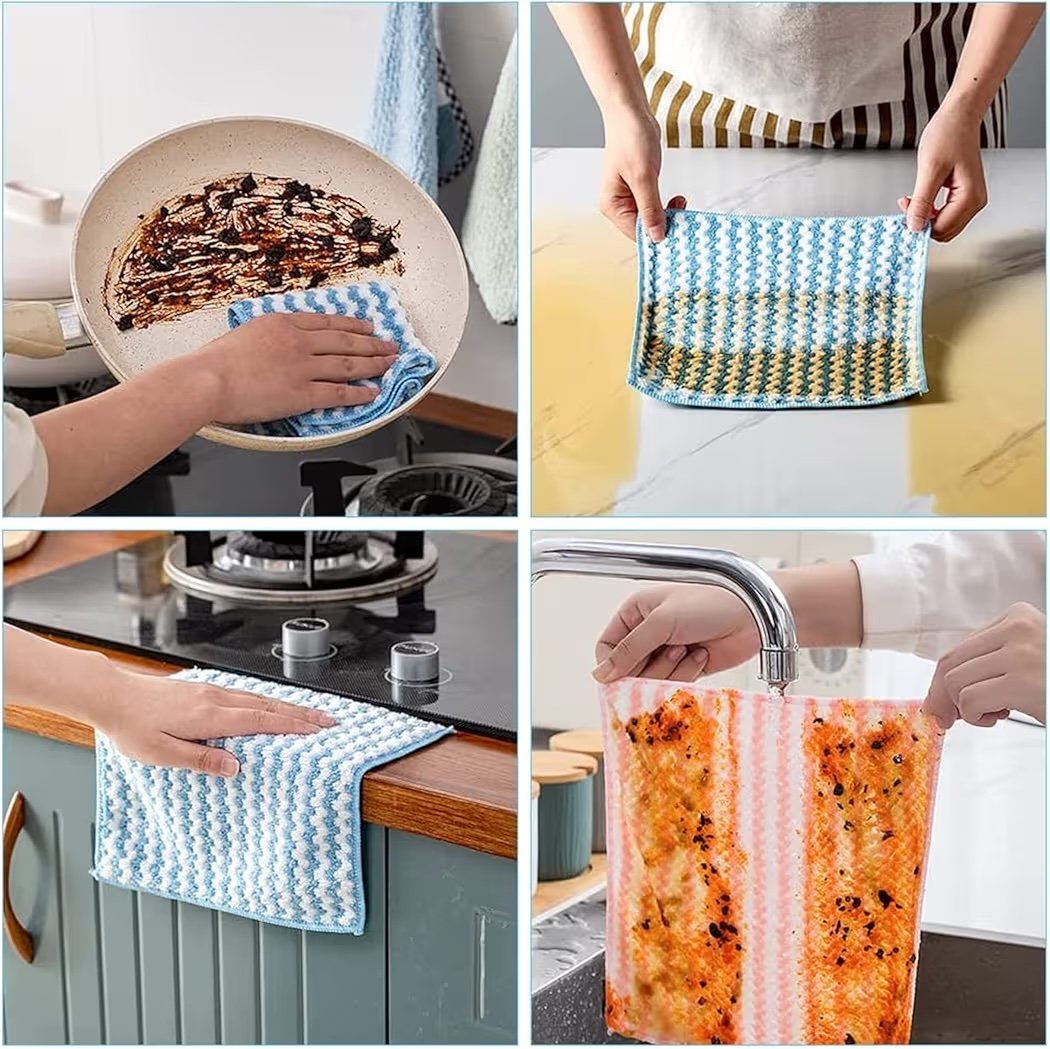 🔹 متعددة الاستخدامات : مناسبة لتنظيف المطبخ، إزالة الغبار، تجفيف اليدين، ومسح البقع.