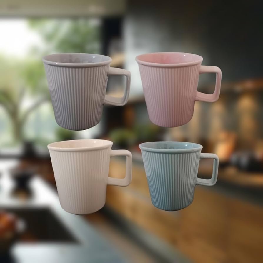 مجموعة من ٤ مجات سيراميك لامع كبيرة ألوان