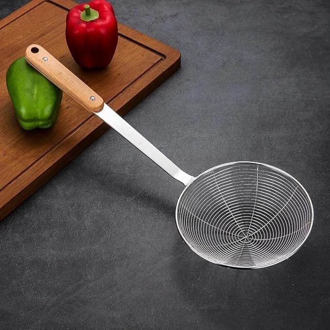 مصفاة مطبخ شبكية بمقبض خشبي للتحمير