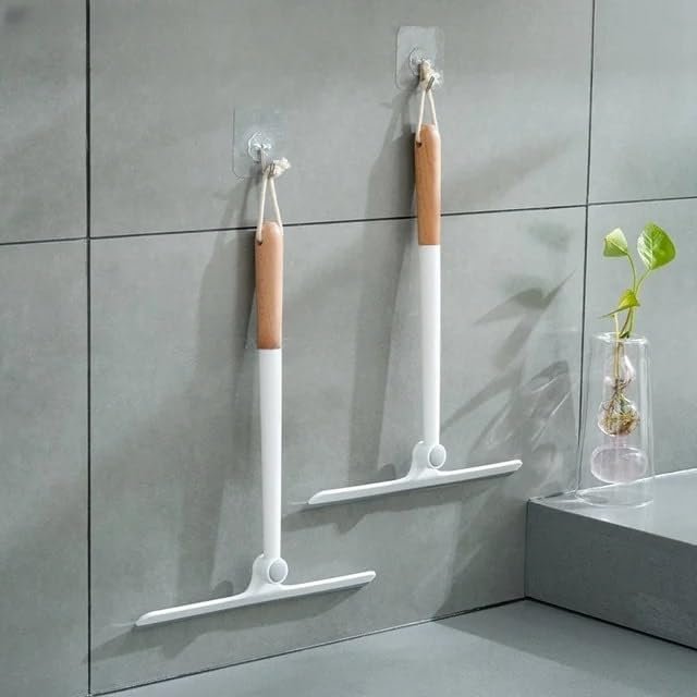 ممسحة زجاج متعددة الاستخدامات بمقبض خشبي ورأس سيليكون دوّار 360 درجة