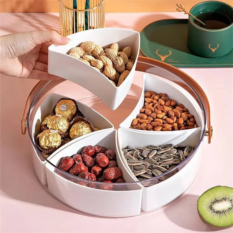 يتميز هذا الصندوق بتصميمه المبتكر الذي يجمع بين الجمال والعملية. يتكون من طبقات متعددة قابلة للتكديس، مما يوفر مساحة تخزين أكبر. كل طبقة تحتوي على أقسام منفصلة تسمح لك بتنظيم وتصنيف أنواع مختلفة من الأطعمة بشكل مرتب وجذاب. كما أن غطاءه الشفاف ومقبضه الأنيق يجعله سهل الحمل، مما يتيح لك تقديمه مباشرة على الطاولة أو نقله بسهولة إلى أي مكان.