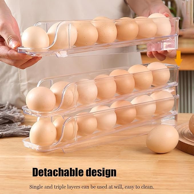 منظم بيض 3 أدوار شفاف بتصميم منزلق قابل للفصل