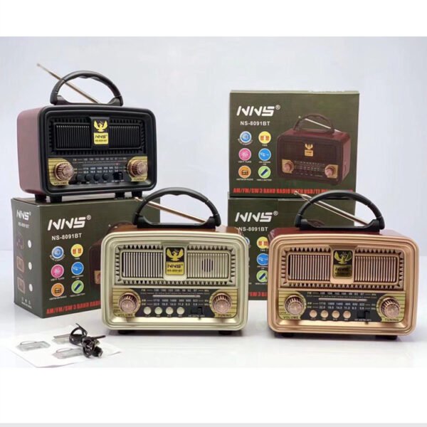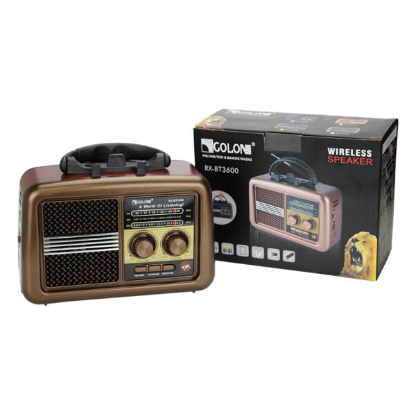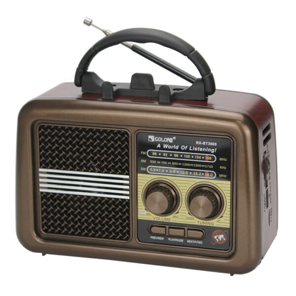 راديو كولون (COLONE) موديل RX-BT3600 | Ns-809 1BT – محطة إذاعية متكاملة ومتطورة تجمع بين التقليدية والحديثة! يتميز هذا الراديو بتصميم كلاسيكي أنيق مع وظائف عصرية، مما يجعله جهازًا مثاليًا لعشاق الراديو والموسيقى. لا يقتصر على استقبال المحطات الإذاعية فحسب، بل يعمل أيضًا كسماعة لاسلكية (Bluetooth) لبث الموسيقى من هاتفك أو جهازك الآخر. يمنحك عالمًا من الاستماع عبر نطاقات تردد متعددة وبجودة صوت واضحة.