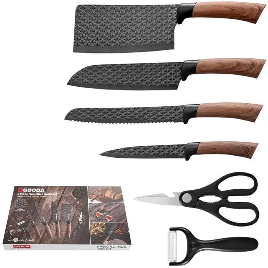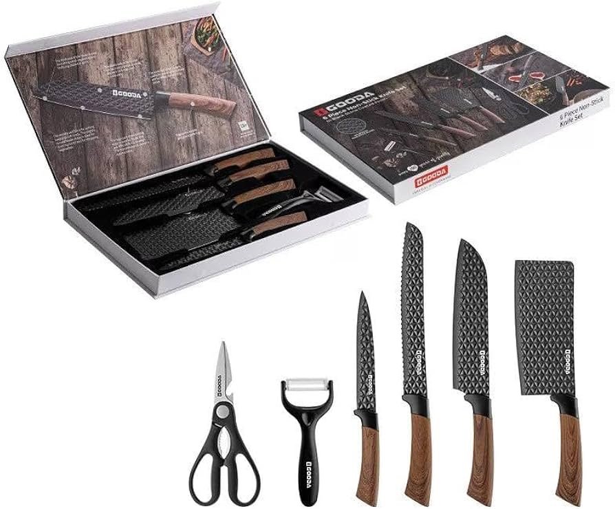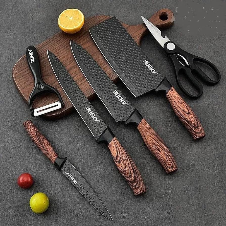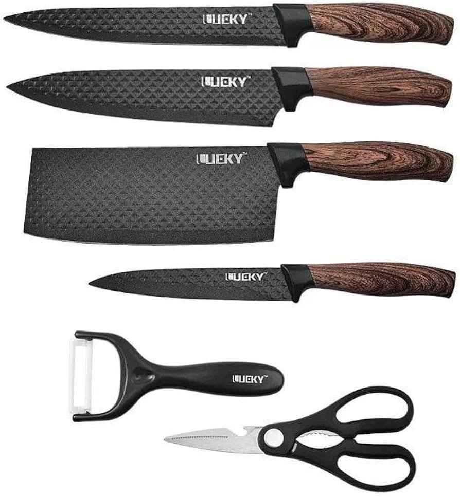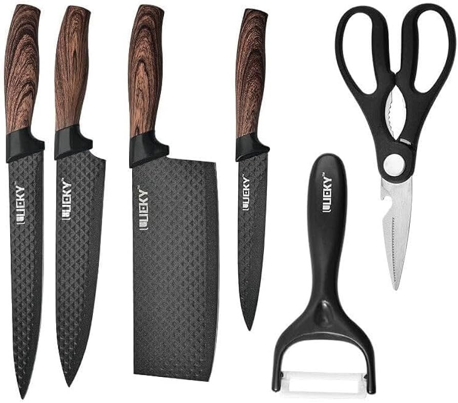 طقم سكاكين مطبخ 6 قطع مع مقشرة ومقص – ستانلس ستيل عالي الجودة